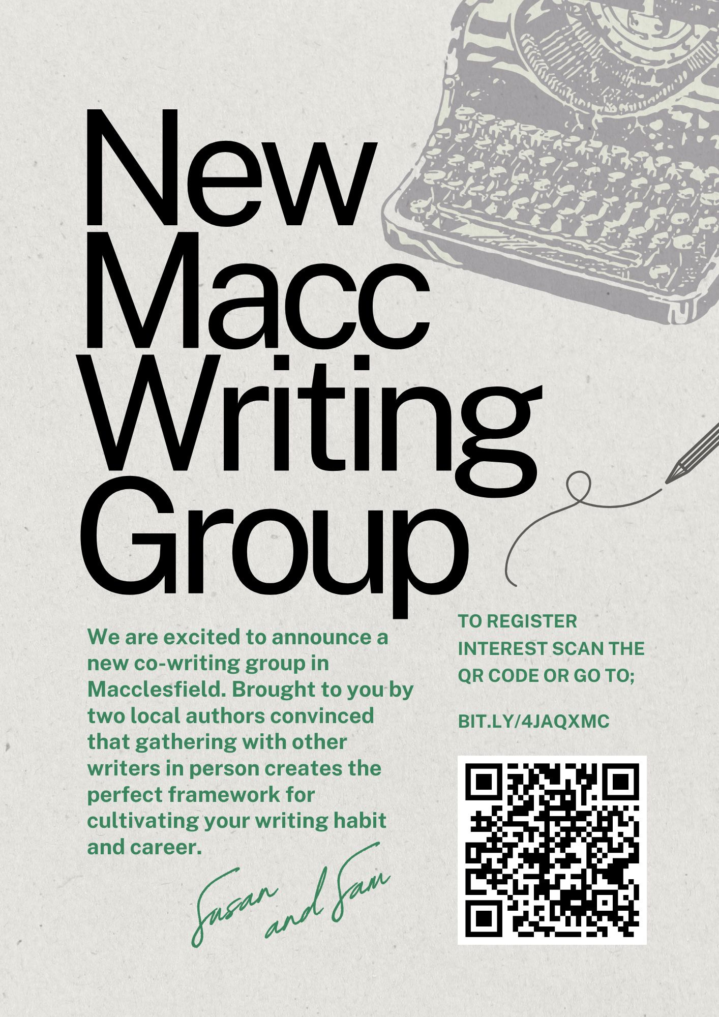 So, in short we've decided to team up and co-host an in-person writing group in Macclesfield.